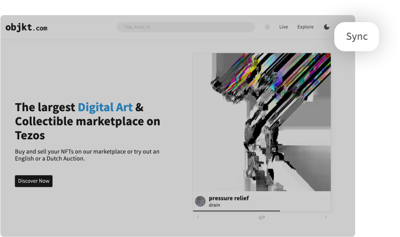 To move forward, open Objkt.com in a new window and get ready to sync.